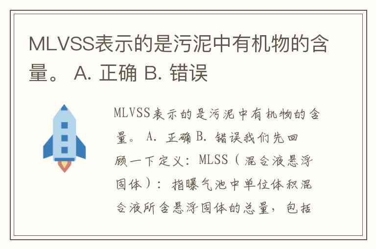 但它通常确实用来表示污泥中有机物相对含量,在很多教材或考题中,简单判断题可能把它当作“正确”,原因是实际工程应用上常用 MLVSS 代表污泥中的有机部分。