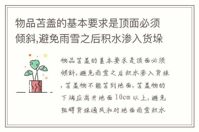 这些确实是货物苫盖(用篷布等遮盖货物)时的基本要求之一,目的就是保护货物不受潮、通风良好、防止虹吸。