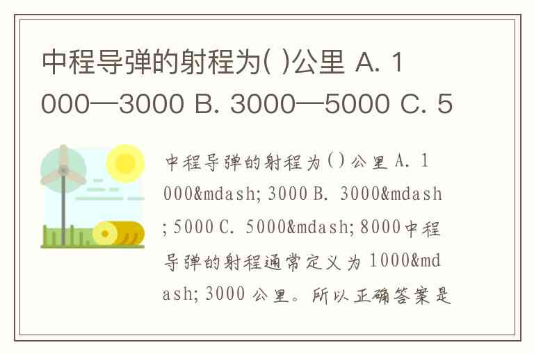 中程导弹的射程为( )公里 A. 1000—3000 B. 3000—5000 C. 5000—8000