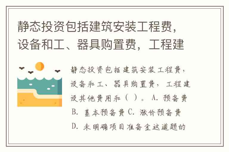 静态投资包括建筑安装工程费,设备和工、器具购置费,工程建设其他费用和( )。 A. 预备费 B. 基本预备费 C. 涨价预备费 D. 未明确项目准备金