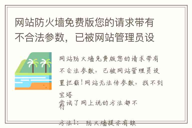 网站防火墙免费版您的请求带有不合法参数,已被网站管理员设置拦截!网站无法传参数,找不到宝塔