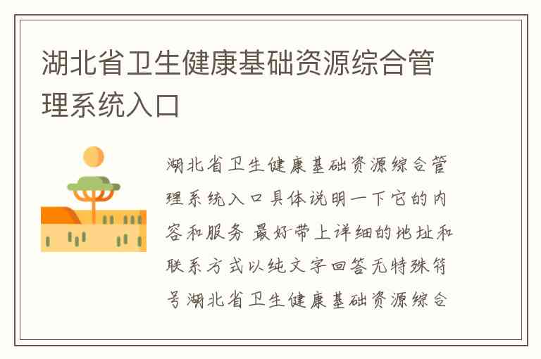 湖北省卫生健康基础资源综合管理系统入口具体说明一下它的内容和服务 最好带上详细的地址和联系方式以纯文字回答无特殊符号
