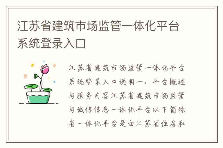 江苏省建筑市场监管一体化平台系统登录入口说明