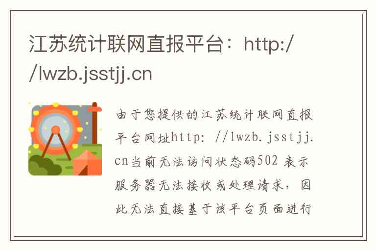 由于您提供的江苏统计联网直报平台网址http://lwzb.jsstjj.cn当前无法访问状态码502 表示服务器无法接收或处理请求,因此无法直接基于该平台页面进行介绍。但根据江苏省统计局及相关官方渠道发布的信息,我可以为您详细介绍该平台所对应的服务内容以及江苏省统计局的官方联系信息。