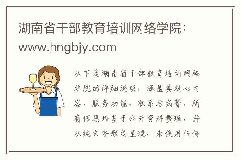 以下是湖南省干部教育培训网络学院的详细说明,涵盖其核心内容、服务功能、联系方式等,所有信息均基于公开资料整理,并以纯文字形式呈现,未使用任何特殊符号。