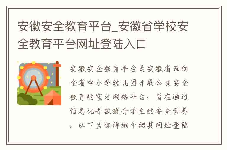 安徽安全教育平台是安徽省面向全省中小学幼儿园开展公共安全教育的官方网络平台,旨在通过信息化手段提升学生的安全素养。以下为你详细介绍其网址登陆入口、主要服务内容以及相关联系方式。