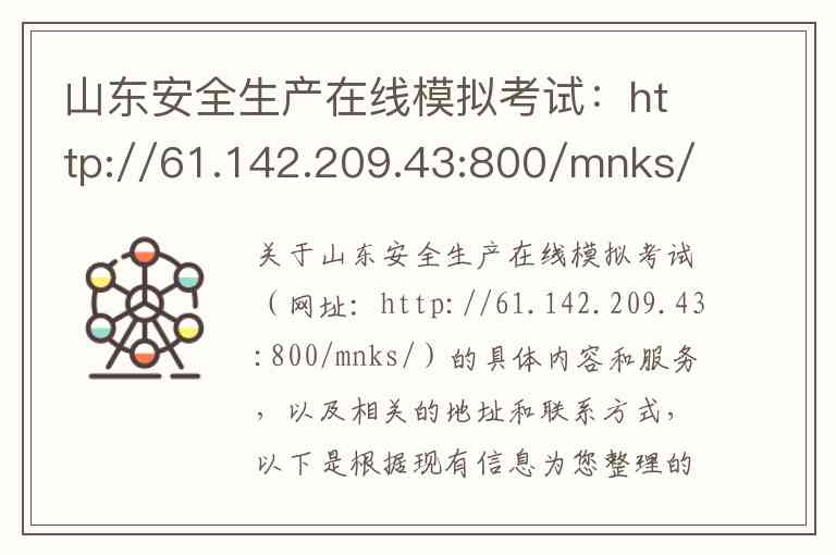 关于山东安全生产在线模拟考试(网址:http://61.142.209.43:800/mnks/)的具体内容和服务,以及相关的地址和联系方式,以下是根据现有信息为您整理的详细说明。