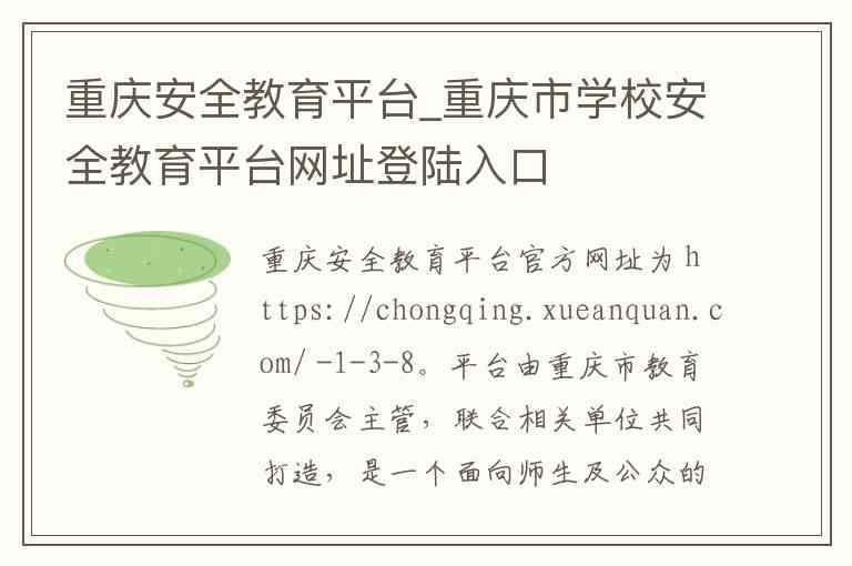 重庆安全教育平台官方网址为 https://chongqing.xueanquan.com/ -1-3-8。平台由重庆市教育委员会主管,联合相关单位共同打造,是一个面向师生及公众的全方位安全教育与培训平台 -6。平台的核心内容与服务主要包括以下几个方面。
