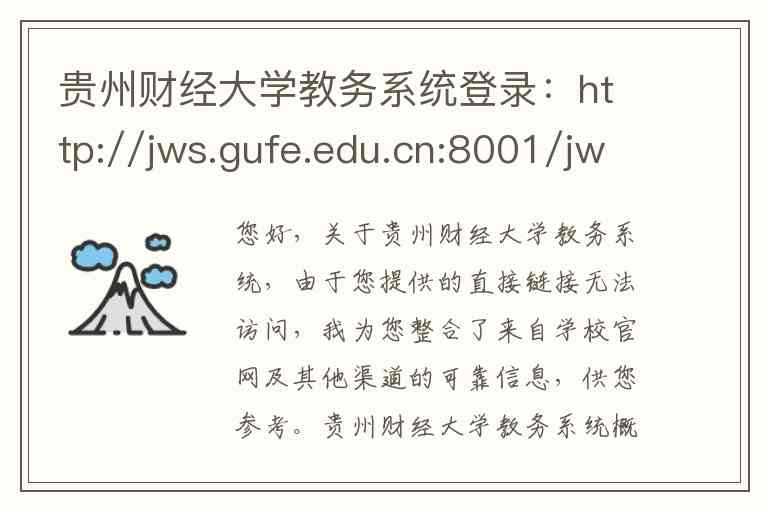 您好,关于贵州财经大学教务系统,由于您提供的直接链接无法访问,我为您整合了来自学校官网及其他渠道的可靠信息,供您参考。