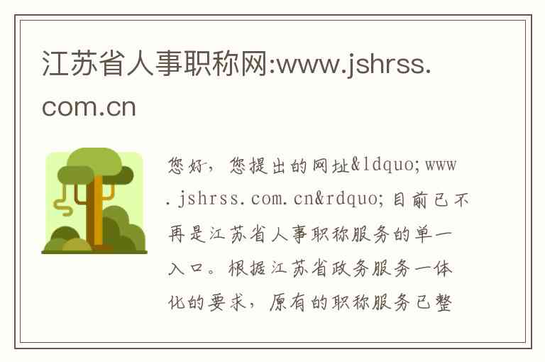 您好,您提出的网址“www.jshrss.com.cn”目前已不再是江苏省人事职称服务的单一入口。根据江苏省政务服务一体化的要求,原有的职称服务已整合至全省统一的人社网上办事服务平台。以下为您详细介绍当前江苏省人事职称服务的核心平台、服务内容及相关联系方式。