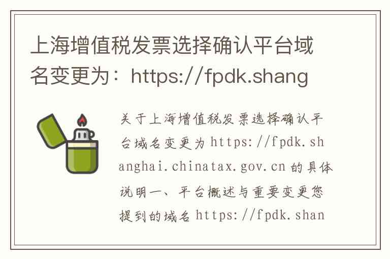 关于上海增值税发票选择确认平台域名变更为 https://fpdk.shanghai.chinatax.gov.cn 的具体说明