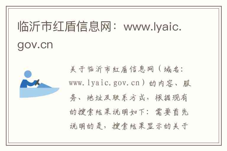 关于临沂市红盾信息网(域名:www.lyaic.gov.cn)的内容、服务、地址及联系方式,根据现有的搜索结果说明如下: