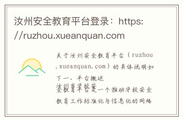 关于汝州安全教育平台(ruzhou.xueanquan.com)的具体说明如下