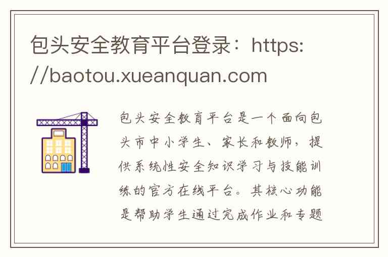 包头安全教育平台的官方电脑端访问地址为:https://baotou.xueanquan.com/ -1-3。您也可以通过 https://baotou.safetree.com.cn 访问 -5-6。