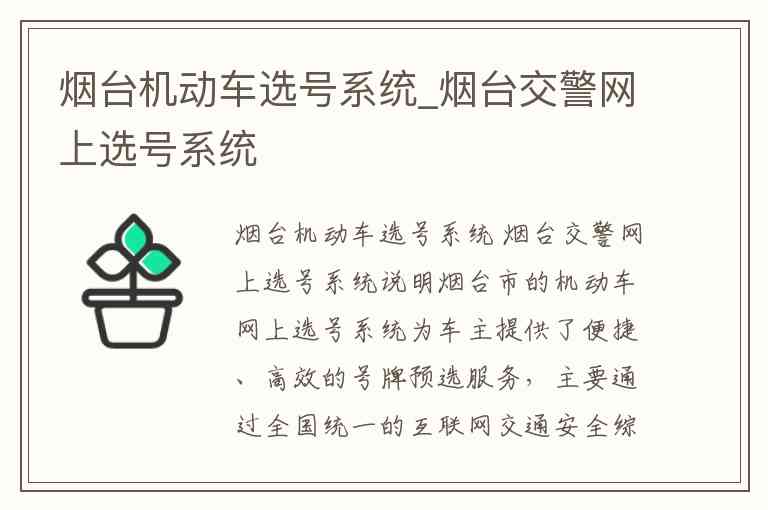烟台市的机动车网上选号系统为车主提供了便捷、高效的号牌预选服务,主要通过全国统一的互联网交通安全综合服务管理平台和交管12123手机APP进行。以下是该系统的详细内容、服务说明及联系方式。