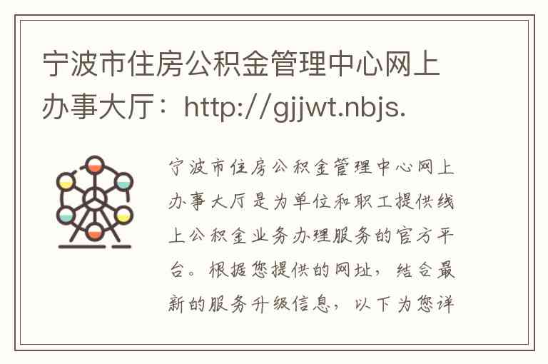 官方网站跳转:通过宁波市住房和城乡建设局网站(zjw.ningbo.gov.cn)首页的“便民服务”或宁波市住房公积金网站(gjj.ningbo.gov.cn)首页的“公积金网厅”链接进入 -5-6。