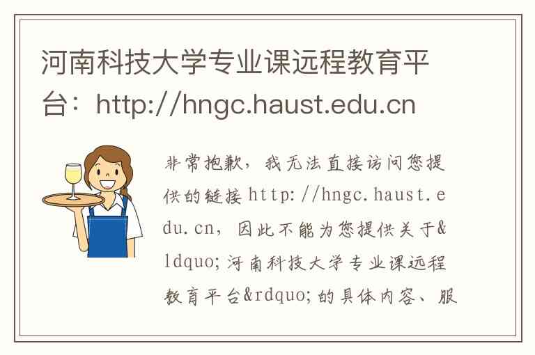非常抱歉,我无法直接访问您提供的链接 http://hngc.haust.edu.cn,因此不能为您提供关于“河南科技大学专业课远程教育平台”的具体内容、服务、详细地址和联系方式的准确信息。