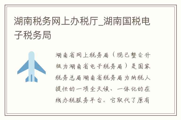 湖南省网上税务局(现已整合升级为湖南省电子税务局)是国家税务总局湖南省税务局为纳税人提供的一项全天候、一体化的在线办税服务平台。它取代了原有的国税和地税分开的网上办税系统,旨在让企业和个人更方便、快捷地办理各类涉税(费)业务-1。下面为你详细介绍它的核心内容、服务、访问地址及联系方式。