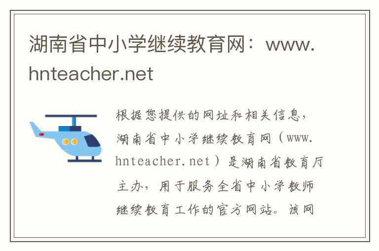 根据您提供的网址和相关信息,湖南省中小学继续教育网(www.hnteacher.net)是湖南省教育厅主办,用于服务全省中小学教师继续教育工作的官方网站。该网站集信息发布、在线学习、培训管理与学分登记等功能于一体。以下为您详细说明其核心内容与服务,并整理相关的联系信息。