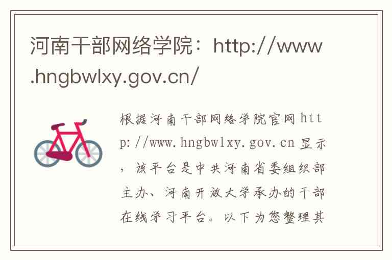 根据河南干部网络学院官网 http://www.hngbwlxy.gov.cn 显示,该平台是中共河南省委组织部主办、河南开放大学承办的干部在线学习平台。以下为您整理其核心内容、服务及联系方式。