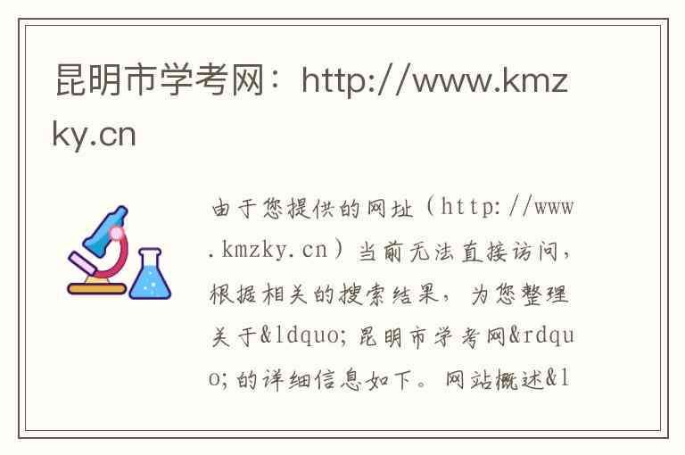由于您提供的网址(http://www.kmzky.cn)当前无法直接访问,根据相关的搜索结果,为您整理关于“昆明市学考网”的详细信息如下。