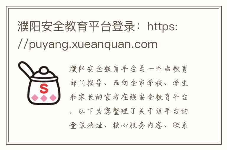濮阳安全教育平台是一个由教育部门指导、面向全市学校、学生和家长的官方在线安全教育平台。以下为您整理了关于该平台的登录地址、核心服务内容、联系方式以及相关背景信息,所有内容均为纯文字形式。