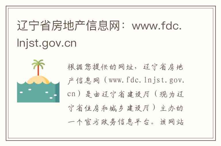 根据您提供的网址,辽宁省房地产信息网(www.fdc.lnjst.gov.cn)是由辽宁省建设厅(现为辽宁省住房和城乡建设厅)主办的一个官方政务信息平台。该网站的主要职能是服务于全省房地产行业的行政主管部门、房地产开发企业以及相关从业机构,侧重于行业管理与数据监控,而非面向普通公众的房产信息门户网站。以下将根据现有信息,详细说明其内容与服务,并提供所知的地址和联系方式。