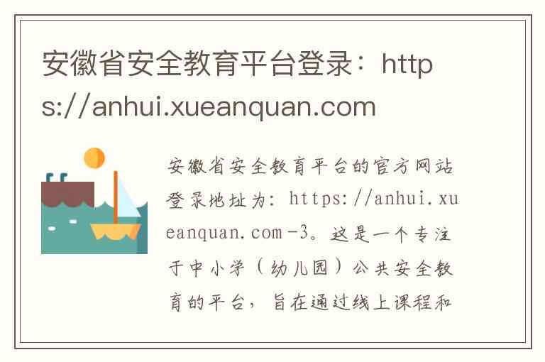安徽省安全教育平台的官方网站登录地址为:https://anhui.xueanquan.com -3。这是一个专注于中小学(幼儿园)公共安全教育的平台,旨在通过线上课程和活动,提高学生的安全防范意识和自我防护能力 -3。