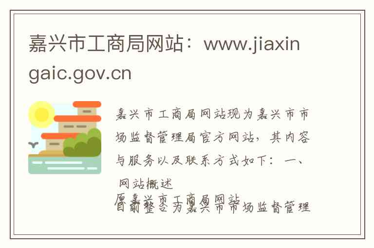 嘉兴市工商局网站现为嘉兴市市场监督管理局官方网站,其内容与服务以及联系方式如下: