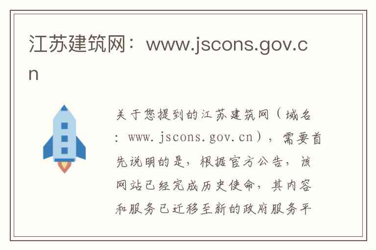 关于您提到的江苏建筑网(域名:www.jscons.gov.cn),需要首先说明的是,根据官方公告,该网站已经完成历史使命,其内容和服务已迁移至新的政府服务平台。以下是基于公开信息的详细说明。