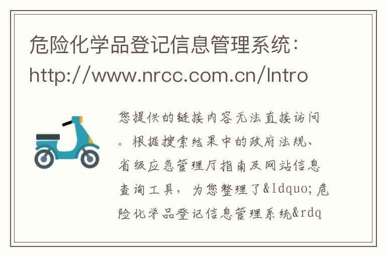 您提供的链接内容无法直接访问。根据搜索结果中的政府法规、省级应急管理厅指南及网站信息查询工具,为您整理了“危险化学品登记信息管理系统”的详细介绍、核心服务、管理机构地址及联系方式。