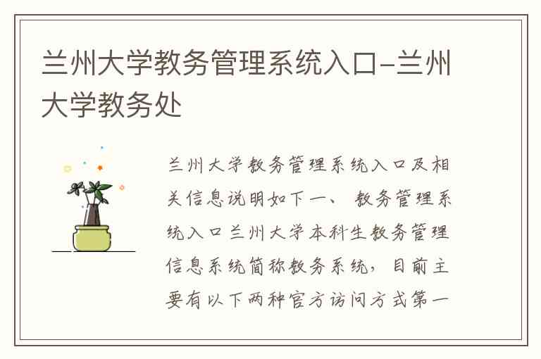 兰州大学教务管理系统入口及相关信息说明如下