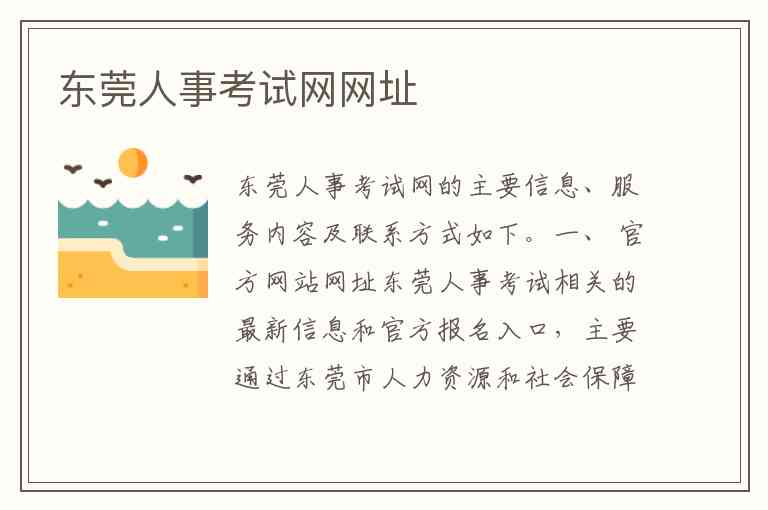 东莞人事考试网的主要信息、服务内容及联系方式如下。