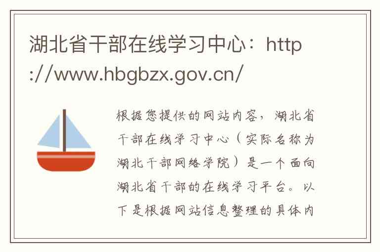 根据您提供的网站内容,湖北省干部在线学习中心(实际名称为湖北干部网络学院)是一个面向湖北省干部的在线学习平台。以下是根据网站信息整理的具体内容和服务说明,包括地址和联系方式。