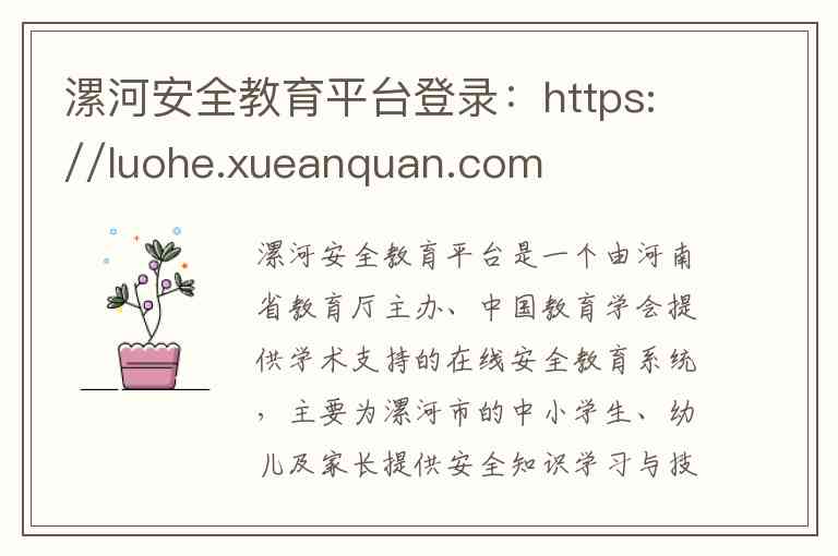 漯河安全教育平台是一个由河南省教育厅主办、中国教育学会提供学术支持的在线安全教育系统,主要为漯河市的中小学生、幼儿及家长提供安全知识学习与技能训练服务-4-5。以下为您详细介绍其核心内容与服务,以及官方地址和联系方式。