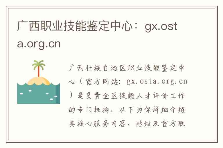 广西壮族自治区职业技能鉴定中心(官方网站:gx.osta.org.cn)是负责全区技能人才评价工作的专门机构。以下为你详细介绍其核心服务内容、地址及官方联系方式。