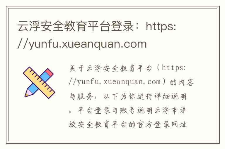 关于云浮安全教育平台(https://yunfu.xueanquan.com)的内容与服务,以下为你进行详细说明。