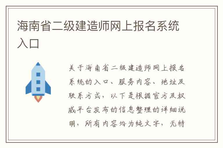 关于海南省二级建造师网上报名系统的入口、服务内容、地址及联系方式,以下是根据官方及权威平台发布的信息整理的详细说明,所有内容均为纯文字,无特殊符号。