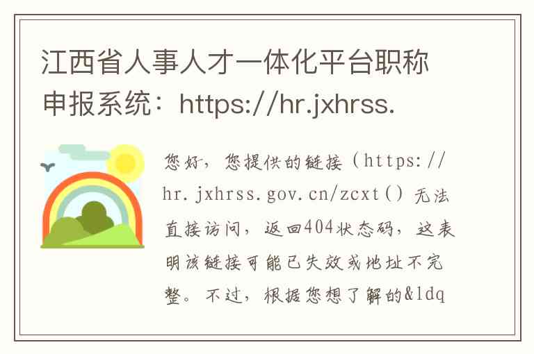 您好,您提供的链接(https://hr.jxhrss.gov.cn/zcxt()无法直接访问,返回404状态码,这表明该链接可能已失效或地址不完整。