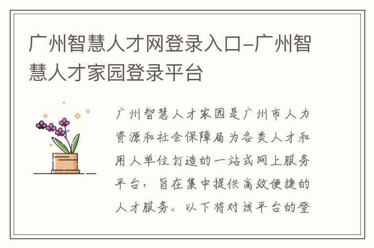 广州智慧人才家园是广州市人力资源和社会保障局为各类人才和用人单位打造的一站式网上服务平台,旨在集中提供高效便捷的人才服务。以下将对该平台的登录方式、核心服务内容、联系渠道和重要注意事项进行详细说明。