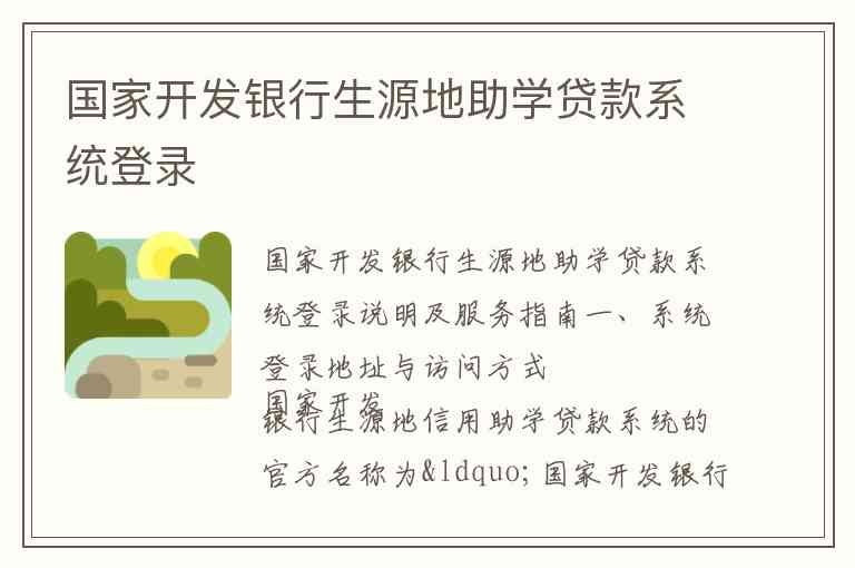 国家开发银行生源地助学贷款系统登录说明及服务指南