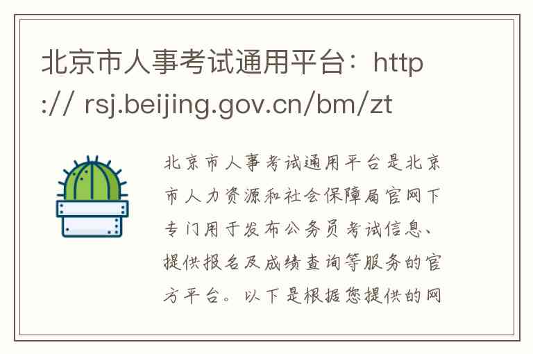 北京市人事考试通用平台是北京市人力资源和社会保障局官网下专门用于发布公务员考试信息、提供报名及成绩查询等服务的官方平台。以下是根据您提供的网址内容整理的具体说明。
