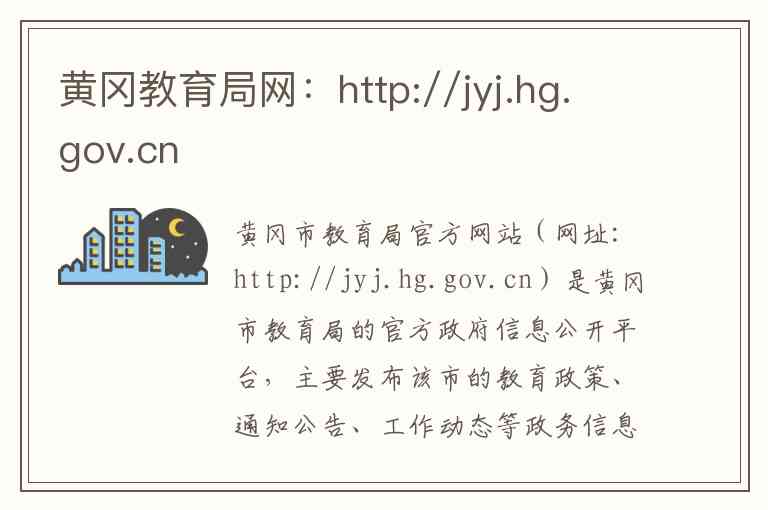 黄冈市教育局官方网站(网址:http://jyj.hg.gov.cn)是黄冈市教育局的官方政府信息公开平台,主要发布该市的教育政策、通知公告、工作动态等政务信息。其核心内容与服务如下: