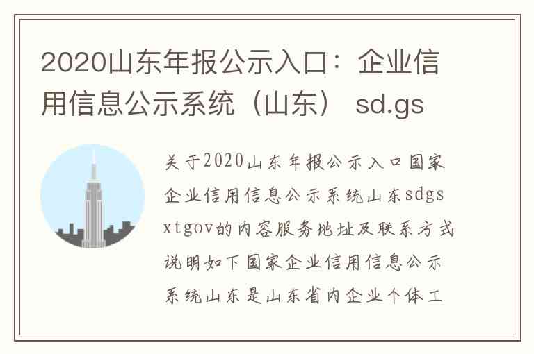 关于2020山东年报公示入口国家企业信用信息公示系统山东sdgsxtgov的内容服务地址及联系方式说明如下