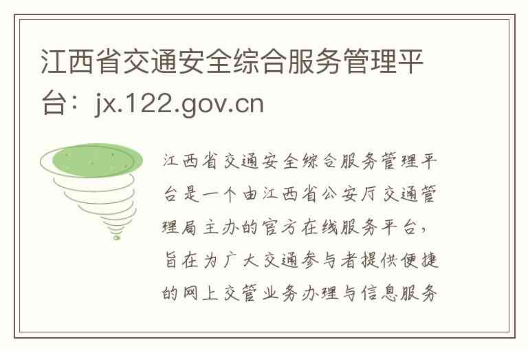 江西省交通安全综合服务管理平台是一个由江西省公安厅交通管理局主办的官方在线服务平台,旨在为广大交通参与者提供便捷的网上交管业务办理与信息服务-3。以下为您整理了关于该平台的详细介绍、服务内容及联系信息。