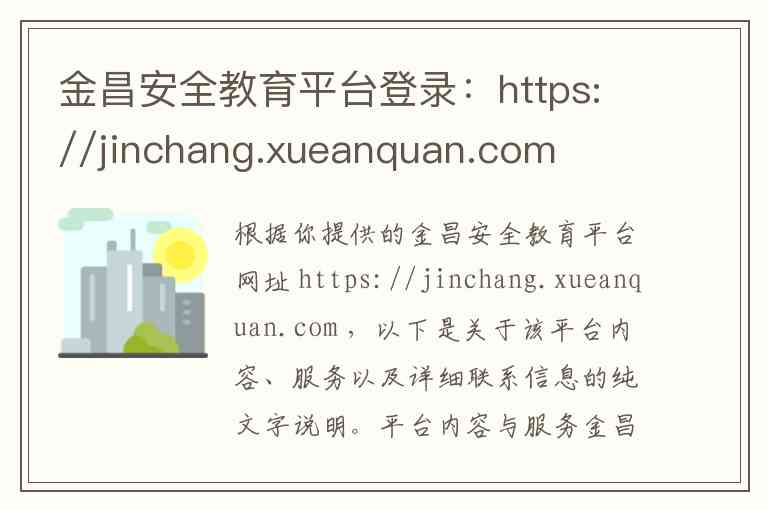 根据你提供的金昌安全教育平台网址 https://jinchang.xueanquan.com ,以下是关于该平台内容、服务以及详细联系信息的纯文字说明。