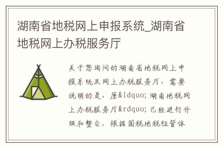 关于您询问的湖南省地税网上申报系统及网上办税服务厅,需要说明的是,原“湖南地税网上办税服务厅”已经进行升级和整合。根据国税地税征管体制改革要求,该系统已统一整合为“湖南省电子税务局”或“湖南省网上税务局”-2-6。以下是关于该平台的服务内容、访问地址及联系方式的详细说明。