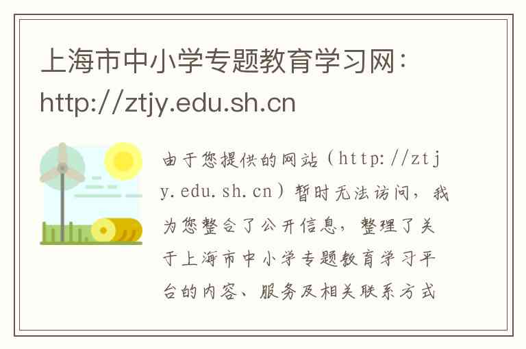 由于您提供的网站(http://ztjy.edu.sh.cn)暂时无法访问,我为您整合了公开信息,整理了关于上海市中小学专题教育学习平台的内容、服务及相关联系方式。