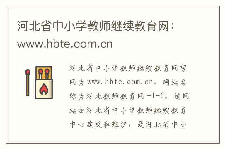河北省中小学教师继续教育网官网为 www.hbte.com.cn,网站名称为河北教师教育网 -1-6。该网站由河北省中小学教师继续教育中心建设和维护,是河北省中小学幼儿园教师继续教育工作的核心平台 -1。以下是对其内容、服务及联系方式的详细说明。