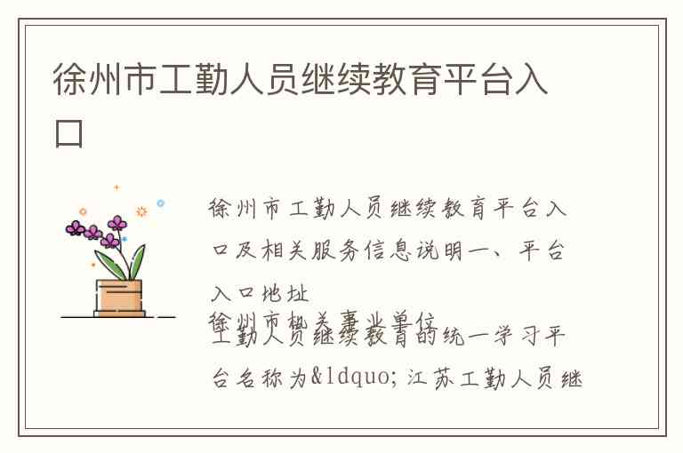 徐州市机关事业单位工勤人员继续教育的统一学习平台名称为“江苏工勤人员继续教育云平台”简称“云平台”网页访问网址为http://www.jsgkpx.com -1-3-4。该平台支持PC端和移动端学习用户可通过电脑浏览器访问上述网址或在手机端登录同一平台进行报名缴费、选课学习及考试-1。
